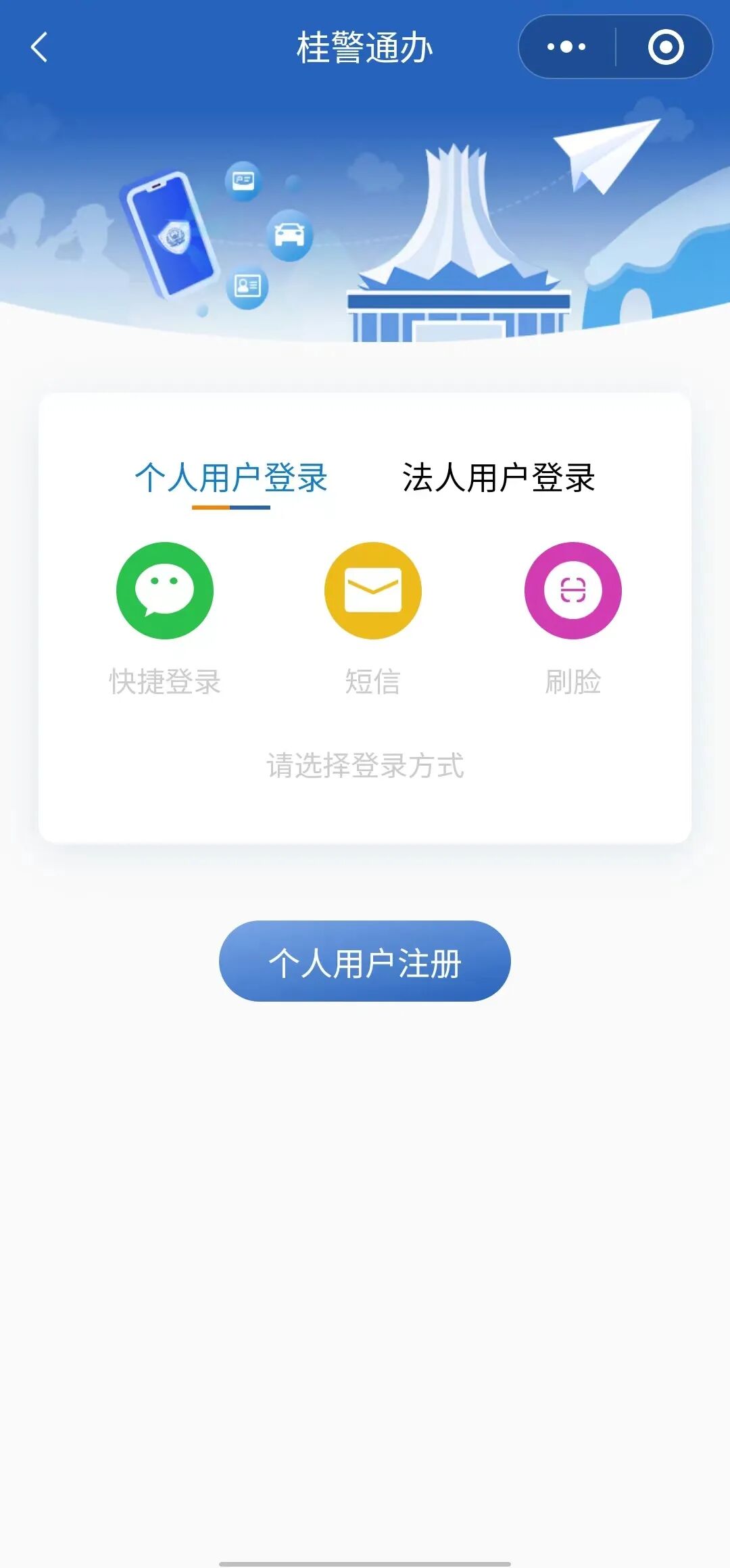 1.微信或者支付宝扫一扫进入“桂警通办”页面