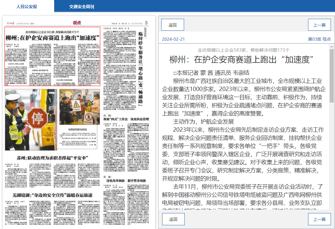 人民公安报:柳州公安在护企安商赛道上跑出“加速度”