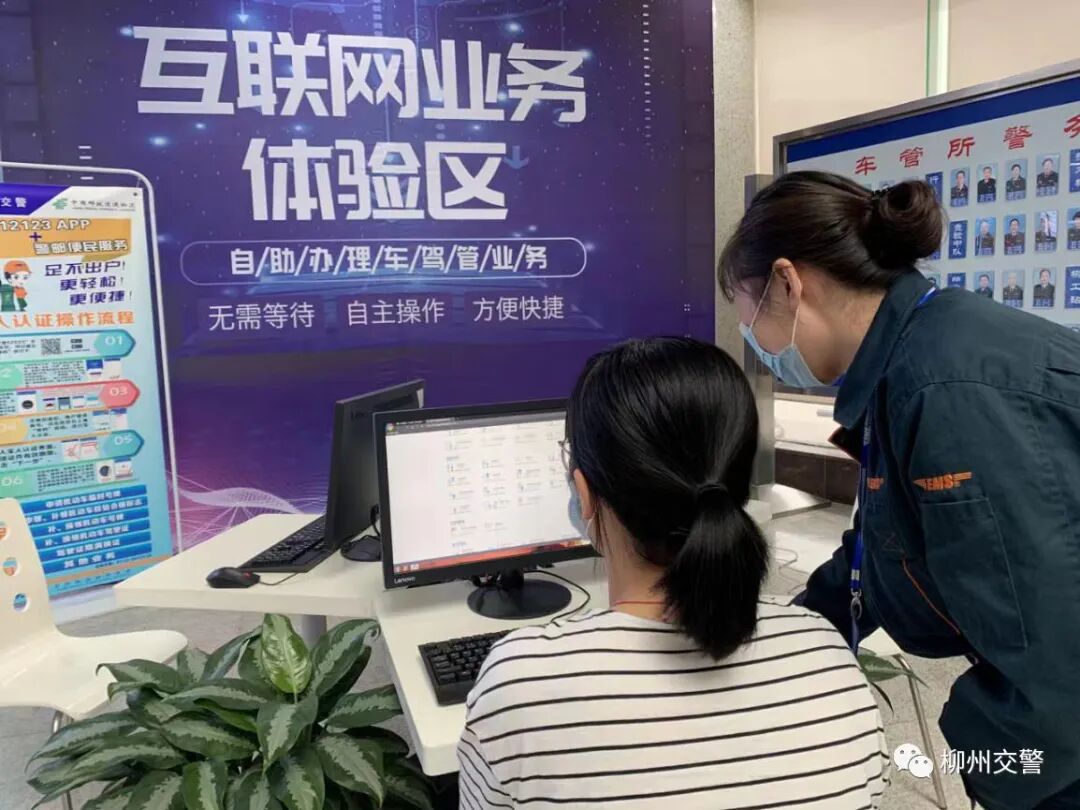 与此同时,柳州交警做精智能服务,在车管所业务服务大厅设置互联网体验区,积极引导群众使用手机和互联网电脑办理业务,多渠道宣传交管“12123”APP,提高群众知晓率。