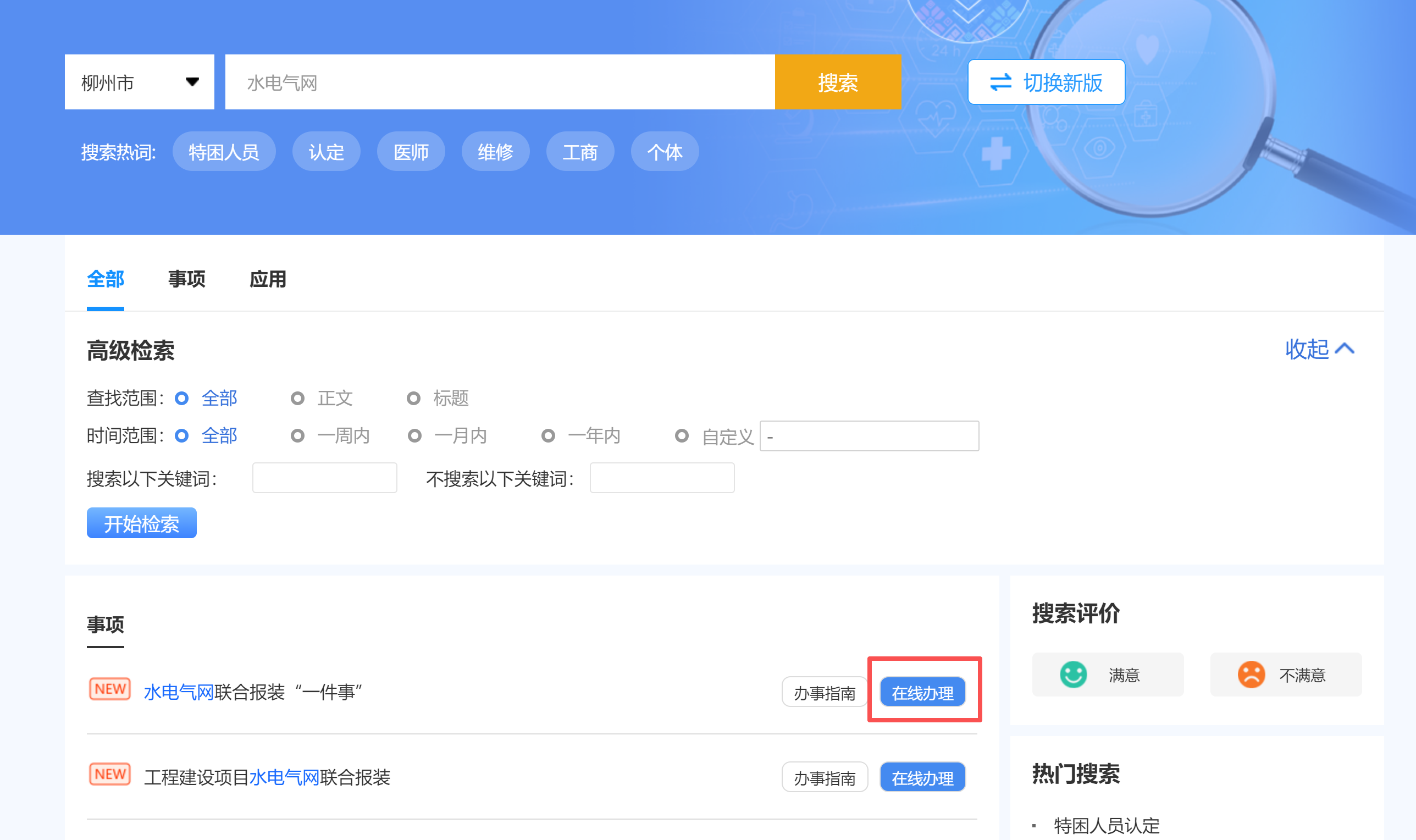 搜索“水电气网联合报装‘一件事’”,点击【立即办理】;