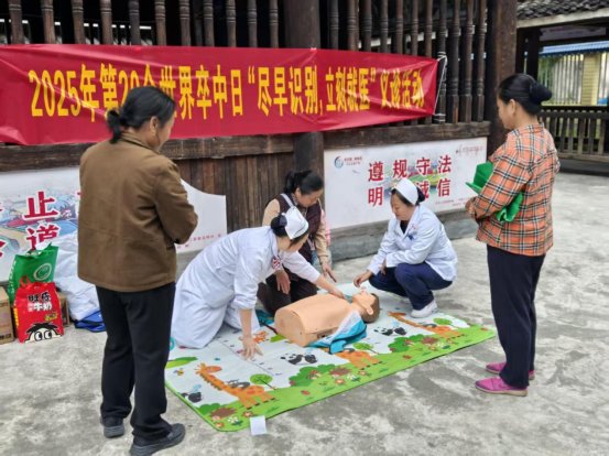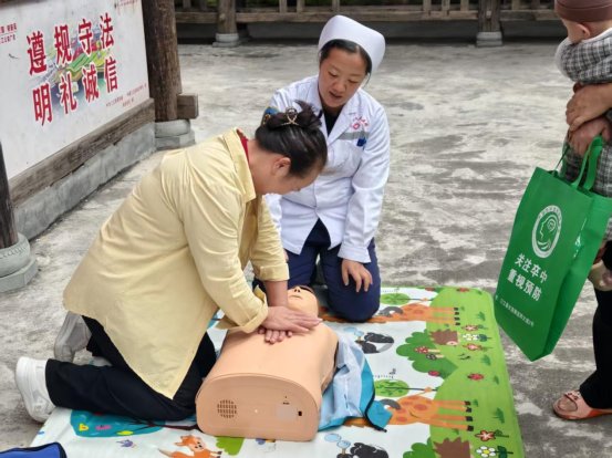 在心肺复苏知识普及环节,医务人员采用通俗易懂的语言,细致讲解并现场演示心肺复苏抢救流程,着重强调 “黄金 4 分钟” 的关键意义。为确保群众掌握操作要领,还邀请大家现场实操练习,在实践中感受急救过程。通过手把手指导、及时解答操作疑问,帮助群众轻松掌握心肺复苏规范操作技能。
