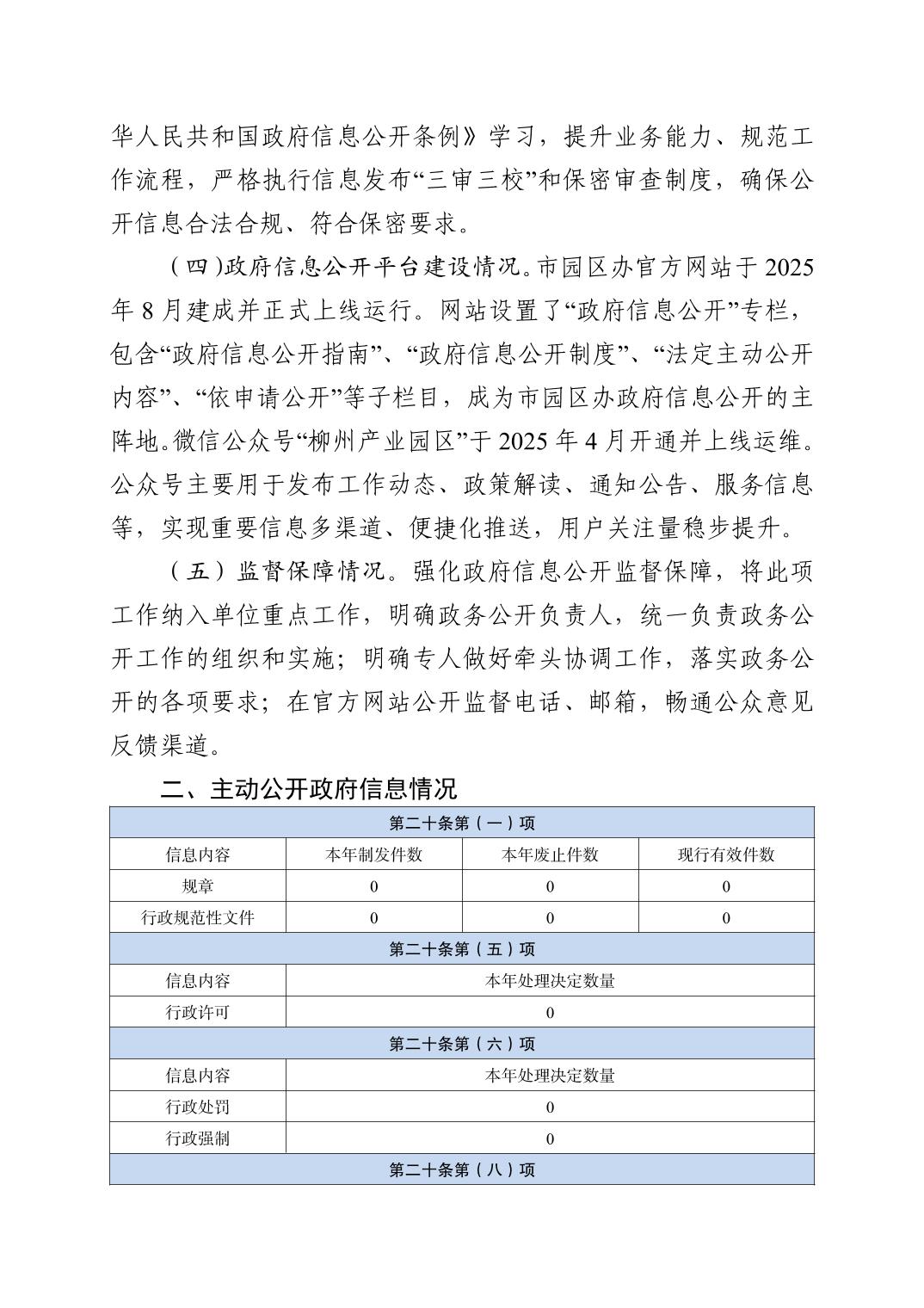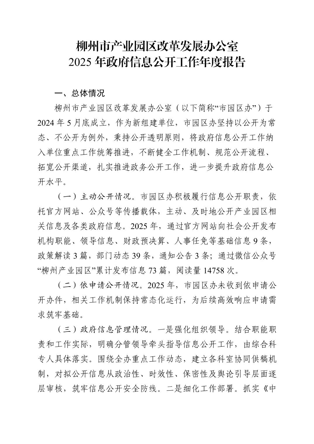 柳州市产业园区改革发展办公室2025年政府信息公开工作年度报告