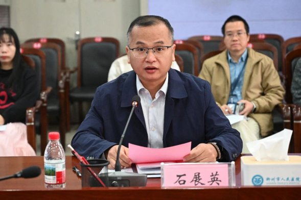副院长石展英对调研组的到来表示热烈欢迎。他表示,医院正致力于通过人工智能与医疗业务深度融合助推高质量发展,目前已在影像辅助诊断、健康管理服务及医疗质量管理等多场景展开应用探索。期待未来能进一步强化产学研协同,共同推动人工智能在医疗服务全流程创新应用,为患者提供更精准、更便捷、更智慧的医疗服务体验。