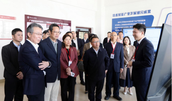 仪式结束后,与会领导嘉宾参观了华为-柳州人工智能产业学院核心教学基地,实地了解学院建设规划与人才培育环境。