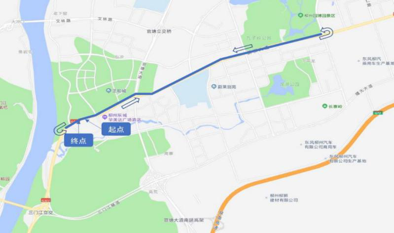 2022 C-V2X“四跨”(柳州)应用示范活动(下简称“四跨活动”)将于2022年9月25日下午、26日上午在柳州市鱼峰区新柳大道102号会展中心(前广场)正式举行。活动演示路线为:会展中心前广场〔西起〕—新柳大道—新柳大道与博园大道交叉口—新柳大道—会展中心前广场〔终〕)。9月22至26日期间预计有约20辆智能网联测试车辆将在演示路线以正常道路行驶模式开展智能网联场景调试和四跨演示活动。测试车辆车身张贴有“2022 C-V2X‘四跨’(柳州)应用示范活动”蓝底白色字样,均为有人驾驶的智能网联汽车并严格遵守交通管理规章制度。