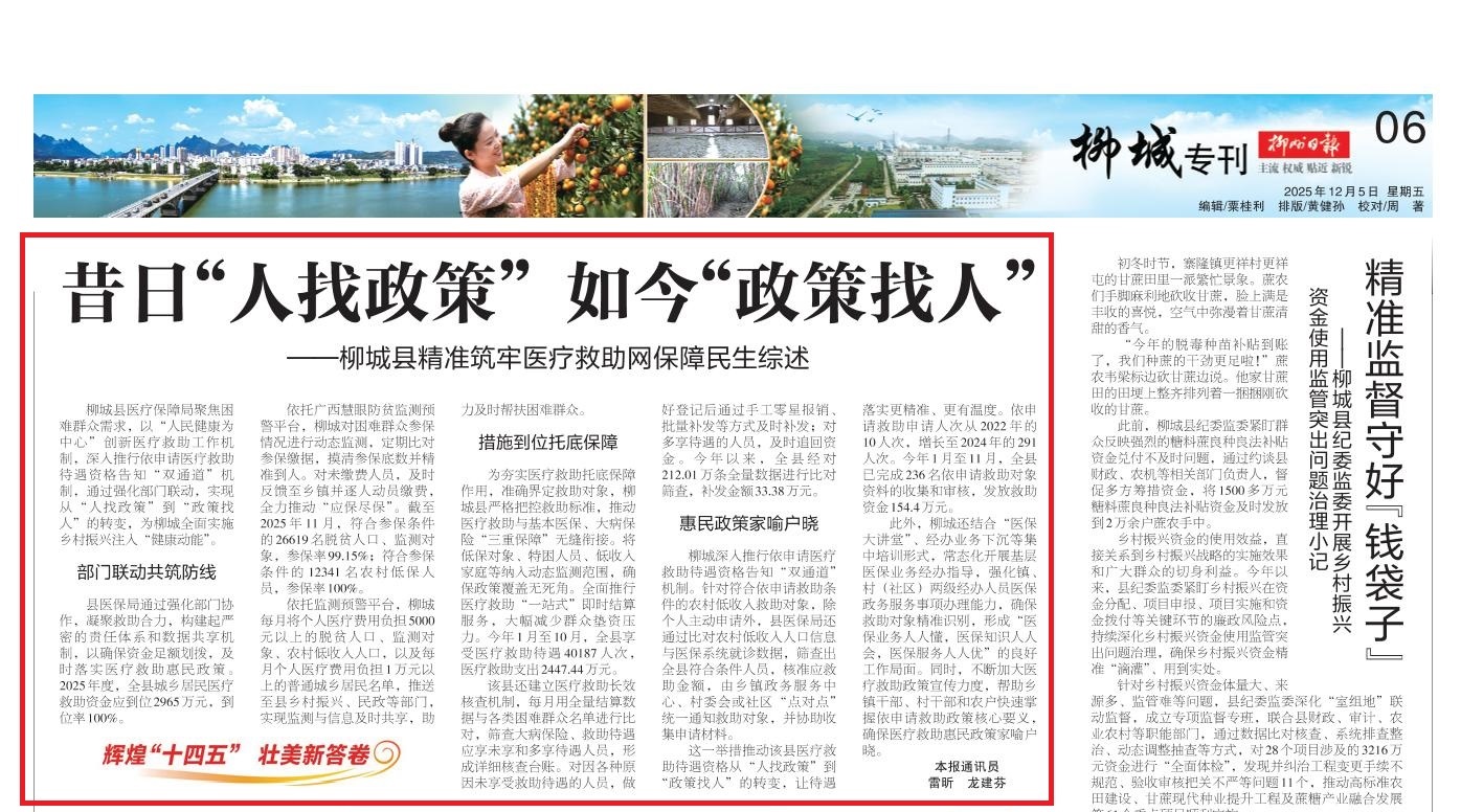 - 2025-12-09 【媒体关注】柳城县精准筑牢医疗救助网保障民生综述:昔日“人找政策” 如今“政策找人”