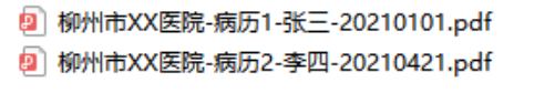 4.整份PDF文件的病历命名格式为:<医院名称>—<病历:序号>—<患者姓名>—<出院时间>。(注:“序号”应与抽检病历清单上的序号相对应)如: