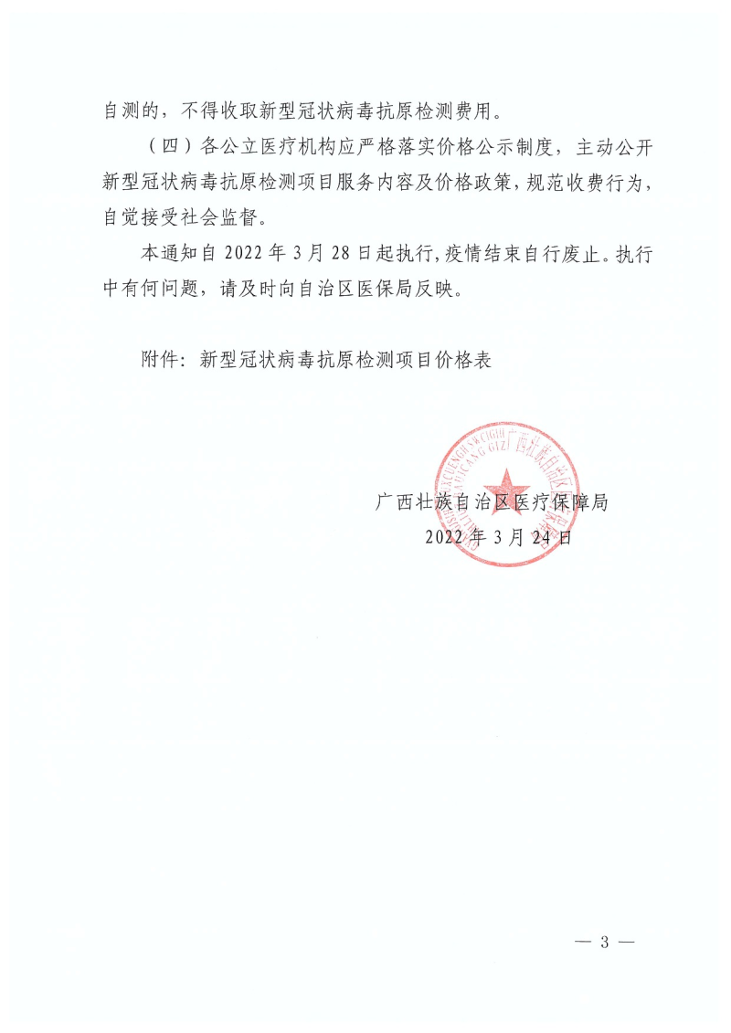 转发自治区医保局关于新型冠状病毒抗原检测项目价格等有关问题的通知(柳医保办发〔2022〕8号)