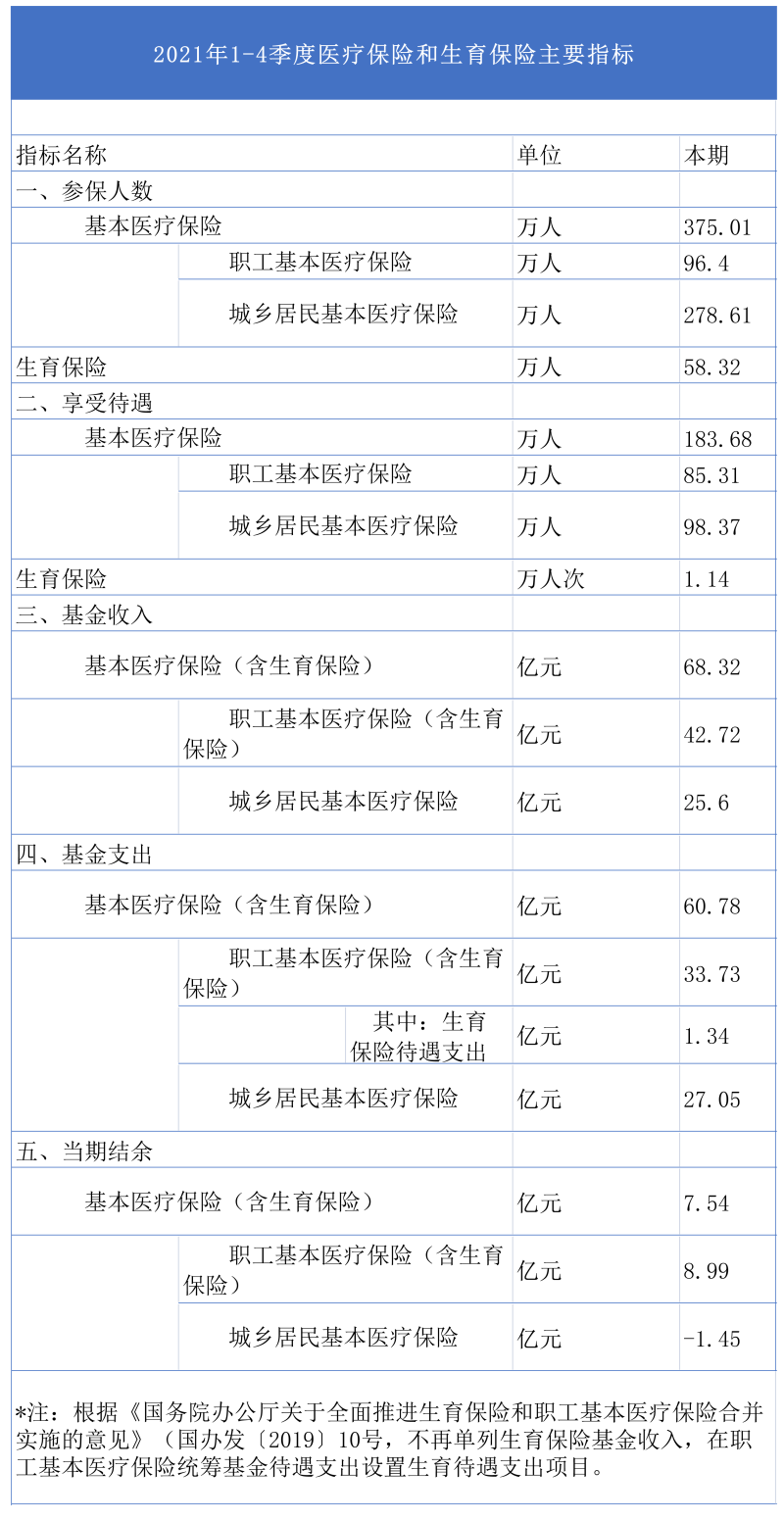 2021年1-4季度医疗保险和生育保险主要指标