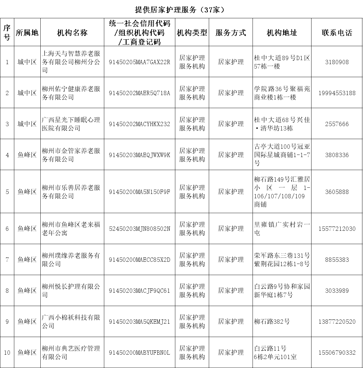 | 柳州市职工长期护理保险柳州市长期护理保险定点护理服务机构名单(2026年3月) |