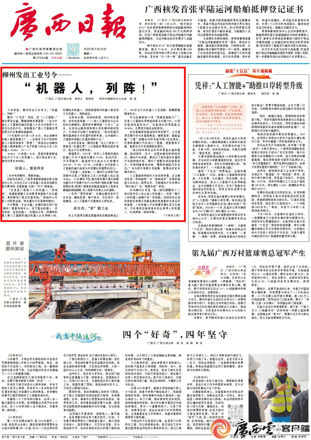 | 鹿寨动态广西日报头版头条丨柳州发出工业号令:“机器人,列阵!” |