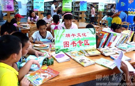 又包粽子又读书,端午文化谜中猜。6月12日,端午节,柳州市图书馆举行益智益趣的“我们的传统节日·端午”主题阅读活动。设立“端午文化”图书专区,引导孩子们了解传统节日的相关知识。(柳州日报)