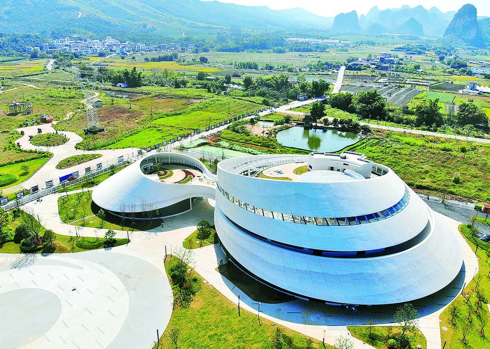 近日,螺蛳粉小镇客厅主体已经完工。通过无人机镜头从空中望去,以螺蛳为原型修建的螺蛳粉小镇客厅如同田间一大一小两颗“大螺蛳”,成为一个新的地标建筑。小镇客厅预计下月建成开放,年接待游客预计50万人次。