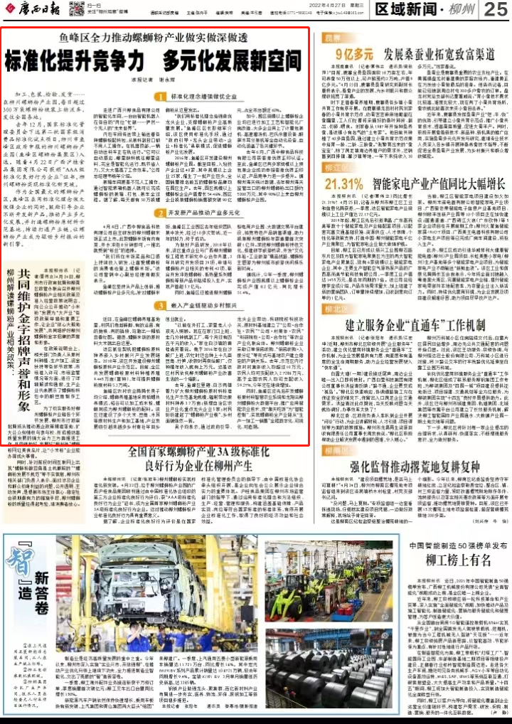 《广西日报》报道:鱼峰区全力推动螺蛳粉产业做实做深做透