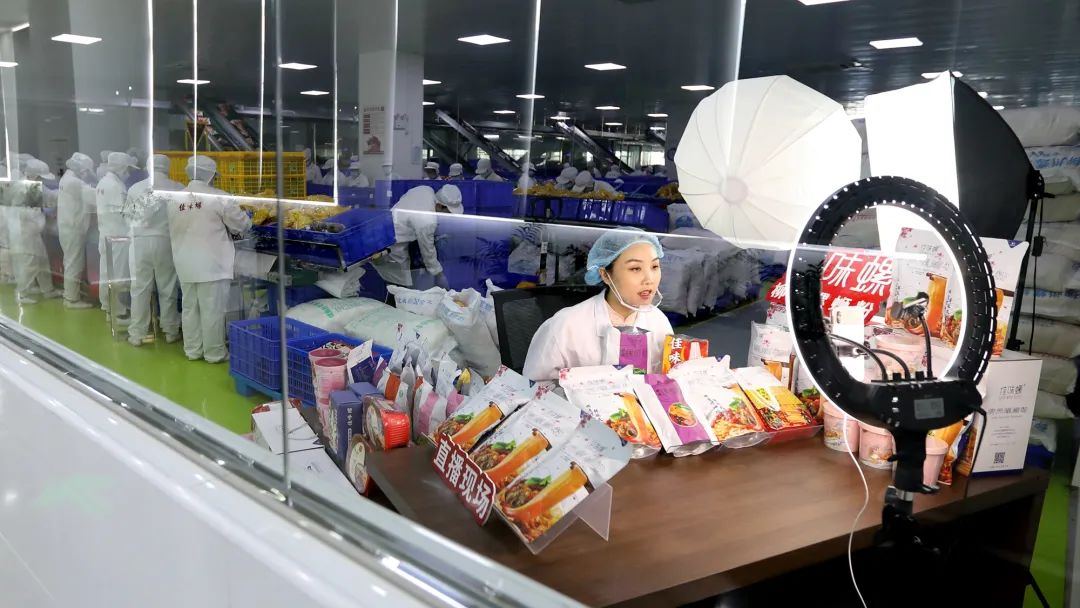 螺蛳粉生产集聚区预包装螺蛳粉企业在生产线开设直播