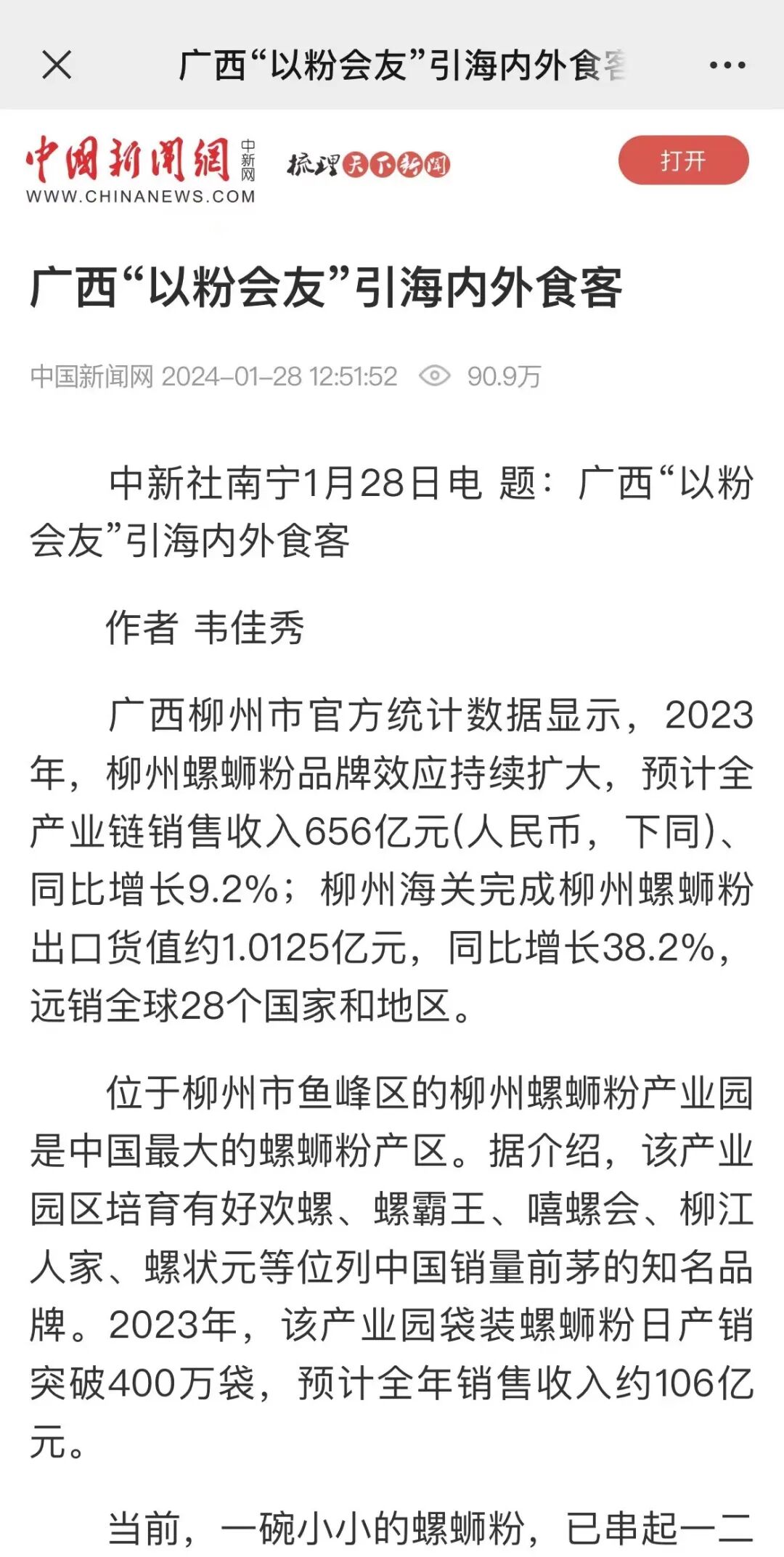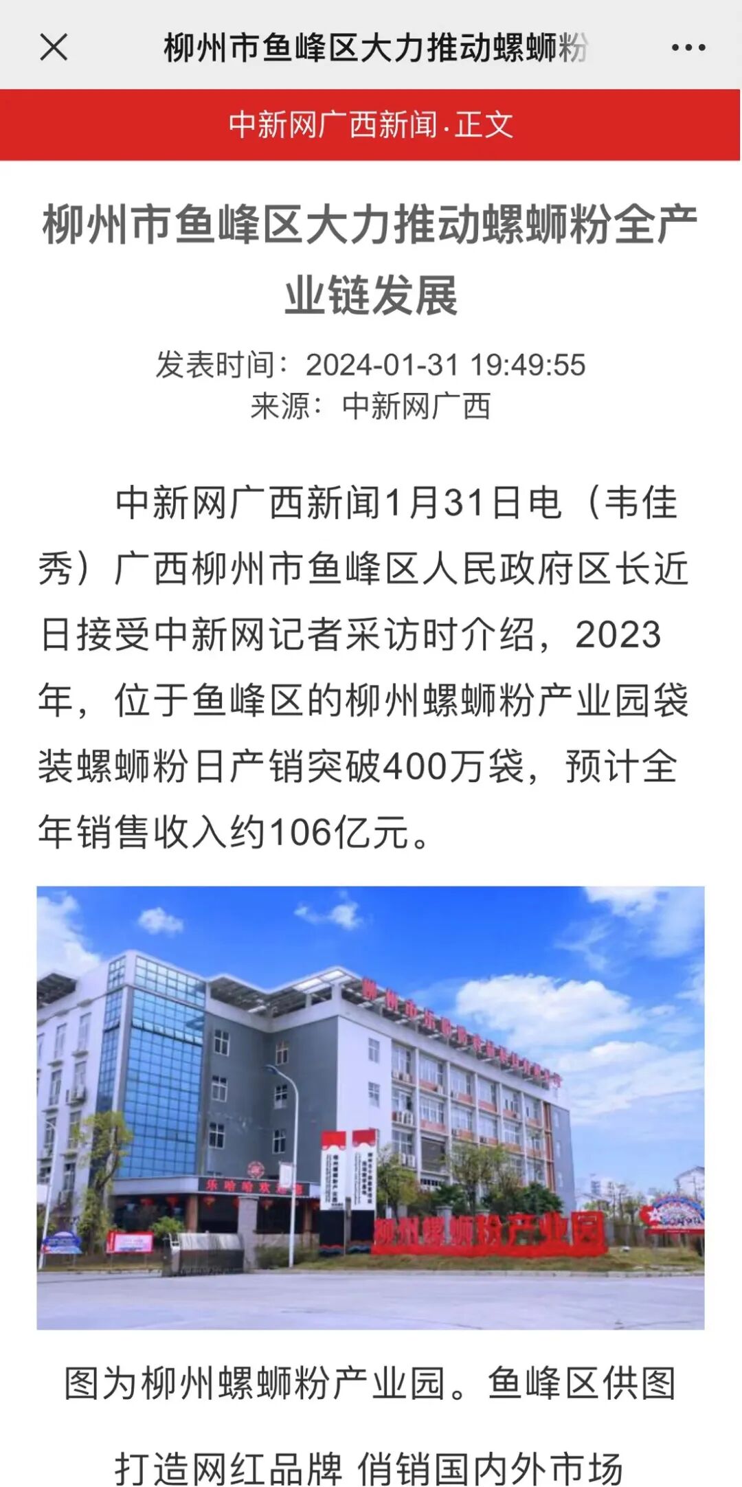 近期,鱼峰区不断解放思想、创新求变,向海图强、开放发展,推动柳州螺蛳粉全产业链发展,助力柳州螺蛳粉畅销海外,受到媒体广泛关注。