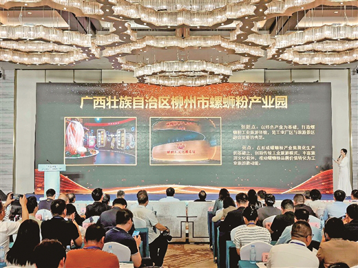 ▲活动现场关于柳州螺蛳粉产业园的介绍 (图源:南国早报记者 蒋为摄)