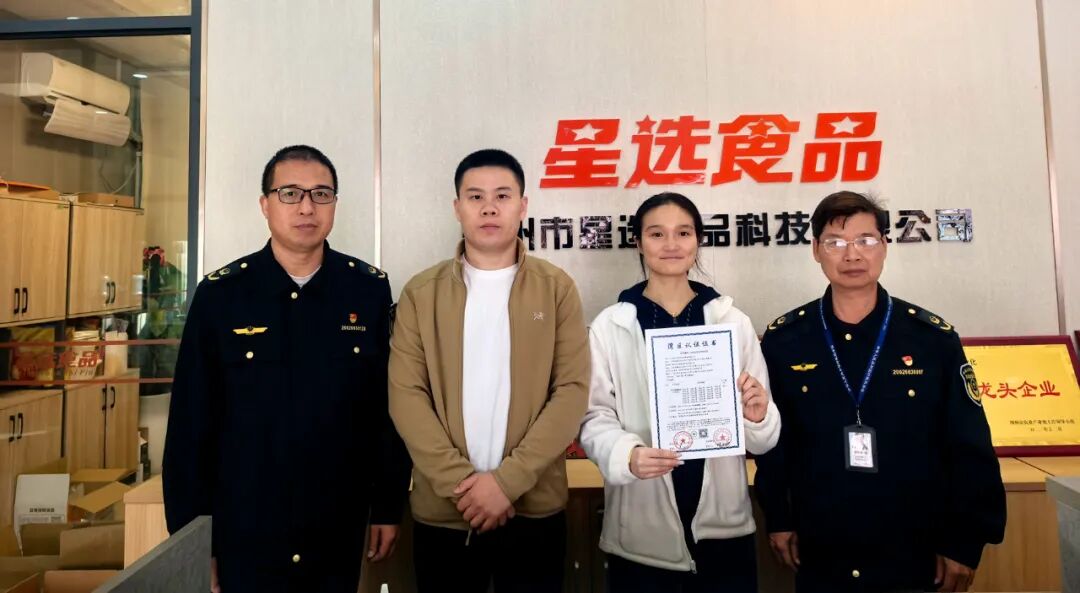 就在一天前,柳江区市场监督管理局工作人员上门送上一份“湾区认证”电子证书,为企业再添“新动能”。这张“绿色通行证”让星选产品得以直供大湾区、迈向国际市场。