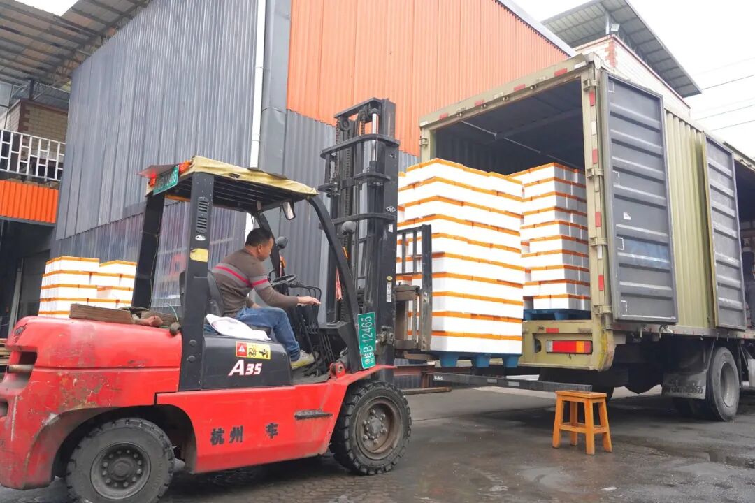 仓储区域同样紧张有序,叉车满载成品往来穿梭;车间外,等待装货的物流车辆排成长龙,从生产到发运各环节衔接顺畅。为保障春节市场供应,公司提前谋划原料储备、优化生产调度,确保每日60万包的稳定产能,全力满足全国消费者的节日需求。“这批2万单货物即将发往全国。近期订单持续增长,我们已启动满产模式并科学排班。”公司总经理莫勤吉介绍。