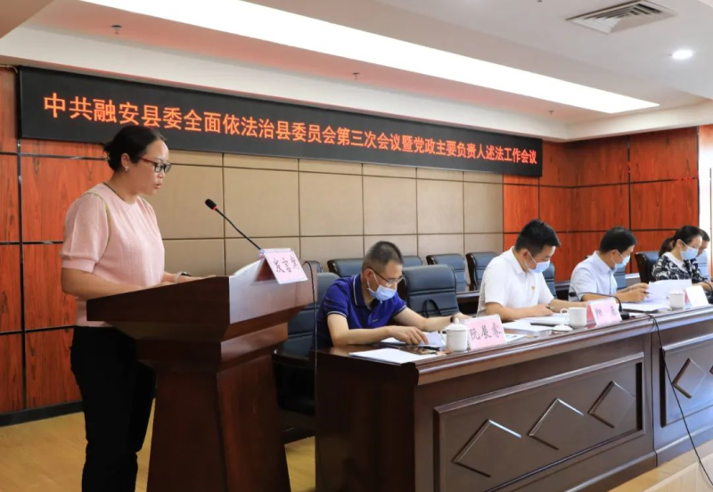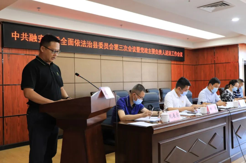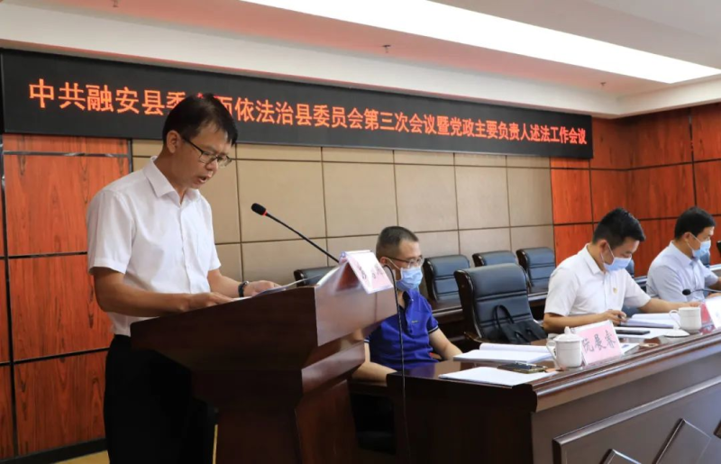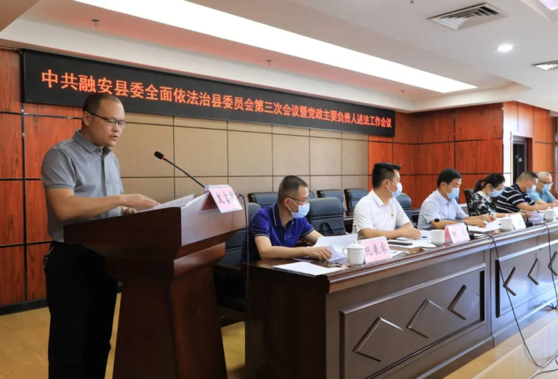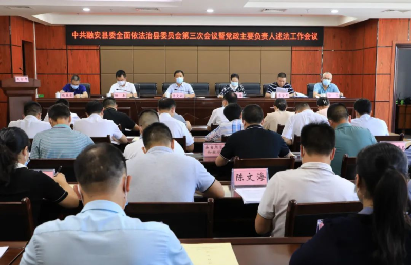 9月2日,中共融安县委全面依法治县委员会第三次会议暨党政主要负责人述法工作会议召开,会议传达学习上级会议精神,听取各乡镇和有关单位党政主要负责人述法,研究部署近期全面依法治县工作。
