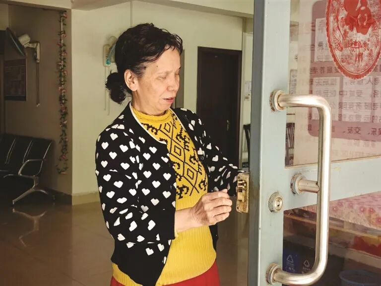 排练结束后,杨小鸾负责关闭活动中心的门锁。