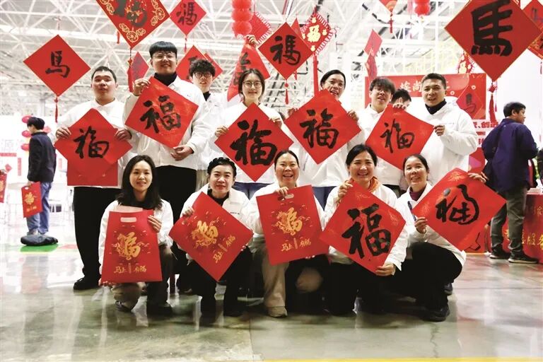 1月30日,“文艺惠民 万福迎春”2026新时代文明实践文艺志愿服务走进广西汽车集团,在柳州五菱新能源汽车有限公司开展活动,80多名文艺志愿者为产业工人送上节日祝福。