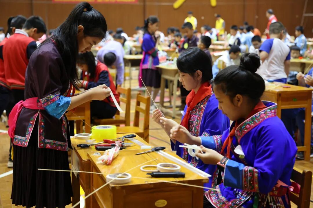 水火箭比高、气弓箭打靶、纸桥承重、“鸡蛋”撞地球比轻、自制小车竞速……一场动手又动脑、好玩又刺激的科技运动会火热进行中。