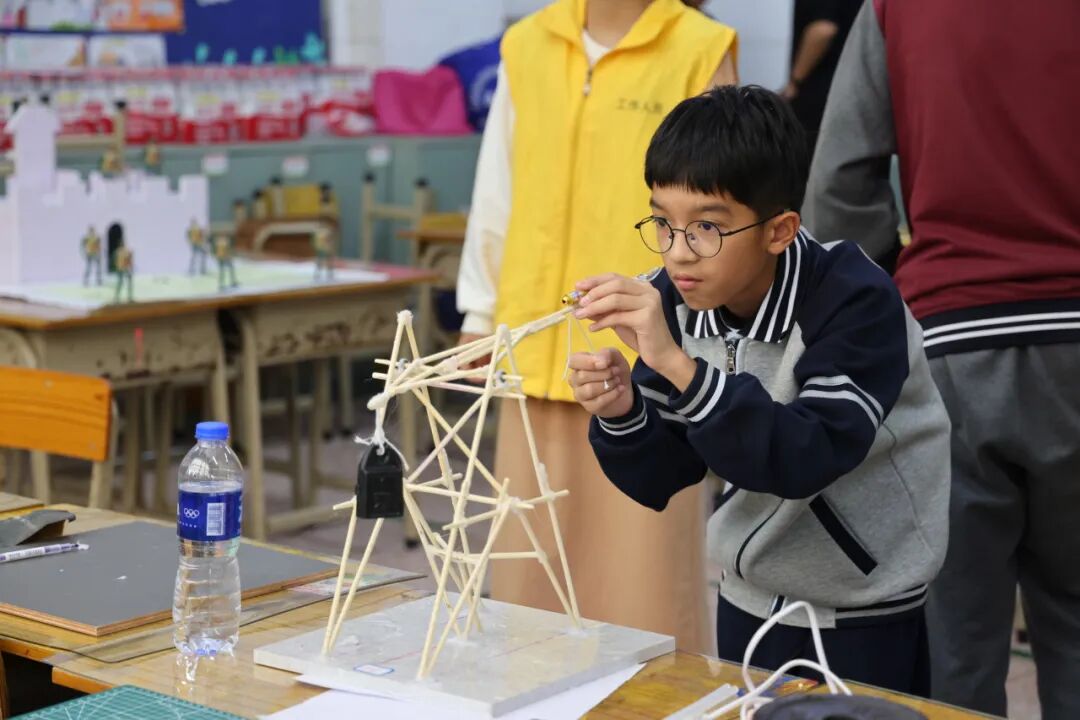 活动现场,同学们热情高涨,他们巧妙地将贴近生活的材料与所掌握的技能运用于自己设计的参赛作品中,高水准地完成各项比赛项目,赢得阵阵欢呼声。“平时我特别喜爱动手制作一些玩具,这次和小伙伴参加市级比赛很开心,也希望能够获得一个优异的成绩!”一名参赛选手开心地说道。