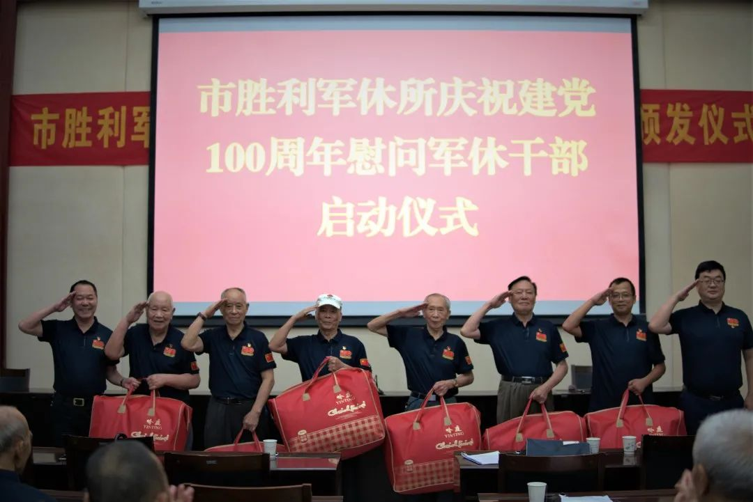 活动第二天,胜利军休所分别举行了“光荣在党50年”纪念章颁发仪式和庆祝建党100周年慰问军休干部启动仪式。仪式上,所领导向党龄50年以上的军休干部老党员集中颁发了“光荣在党50年”纪念章,并送上慰问品,向他们致以崇高的敬意。仪式后,全体党员在党总支书记熊云辉同志的带领下,重温了入党誓词。
