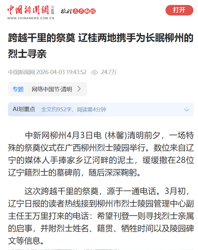 多家媒体转发关注丨“我们不会忘记!”广西日报社与辽宁日报社联动,寻找长眠柳州的辽宁籍烈士亲属