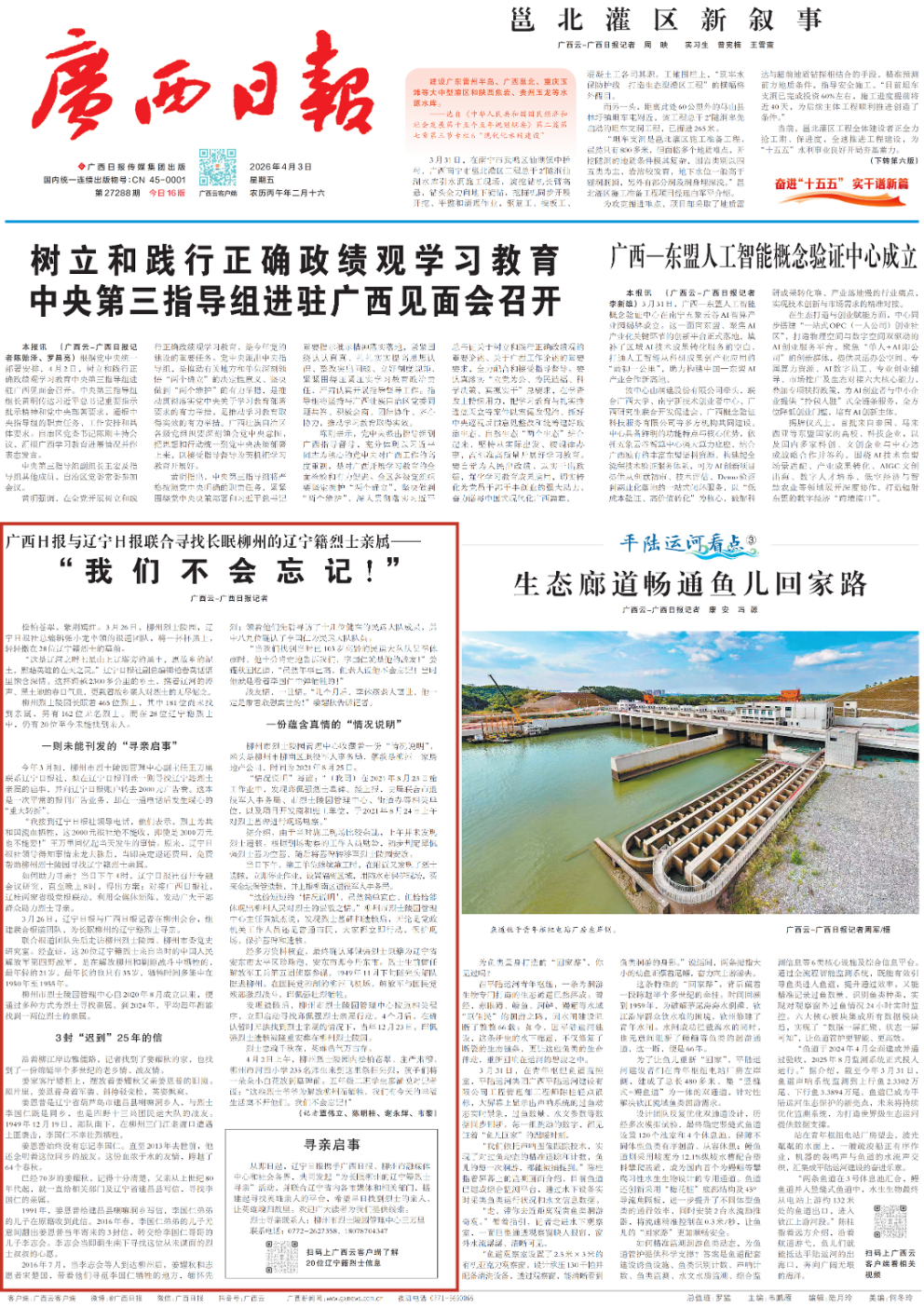 4月3日,《广西日报》头版刊发文章《广西日报与辽宁日报联合寻找长眠柳州的辽宁籍烈士亲属——“我们不会忘记!”》,文章报道了广西日报社与辽宁日报社联动,利用全媒体矩阵,为长眠于柳州烈士陵园的辽宁籍烈士寻亲的故事。目前,柳州烈士陵园长眠着465位烈士,其中181位尚未找到亲属,另有162位无名烈士。而在28位辽宁籍烈士中,仍有20位至今未能找到亲人。报道获中国新闻网、《辽宁日报》、广西新闻网、柳州1号APP的转发关注。