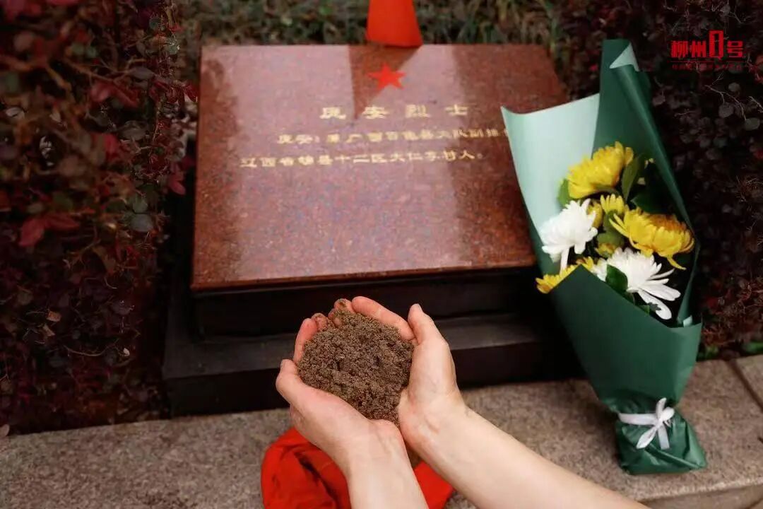 春风轻拂,哀思绵长。3月26日,柳州烈士陵园内,来自《辽宁日报》的记者团队,逐一来到28座辽宁籍烈士墓碑前,鞠躬、擦拭碑文、重新描金,并在墓碑四周撒下从辽河带来的黑土。