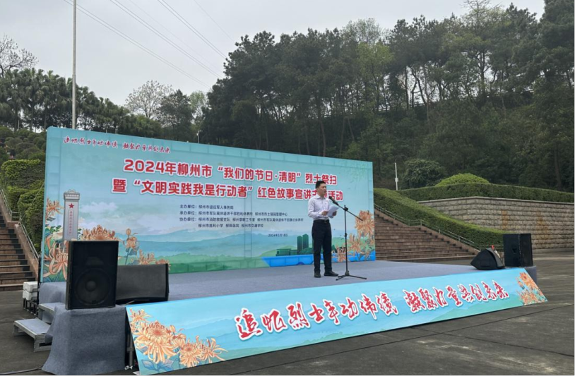 近日,2024年柳州市“我们的节日·清明”烈士祭扫暨“文明实践我是行动者”红色故事宣讲活动在柳州烈士陵园开展。来自市退役军人事务局系统、市消防救援支队、柳钢医院、市交通学校、市胜利小学等单位的近400名干部、职工、师生及部分老战士代表参加活动,市退役军人事务局党组书记、局长丁旭致辞后,在柳州章明工作室宣讲员的慷慨演讲中,感悟韦必江烈士舍生忘死的精神力量。