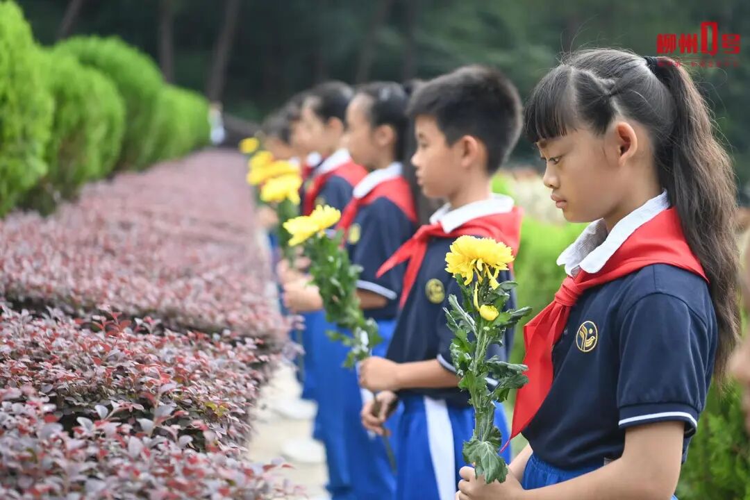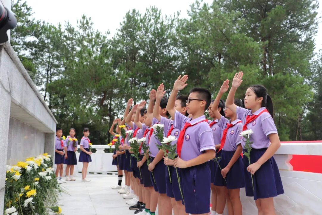 “我们是共产主义接班人,继承革命先辈的光荣传统……”默哀结束,佩戴鲜艳红领巾的少先队员面向烈士纪念碑,唱响中国少年先锋队队歌,表达继承革命先辈光荣传统、踏着烈士足迹前进的志向。