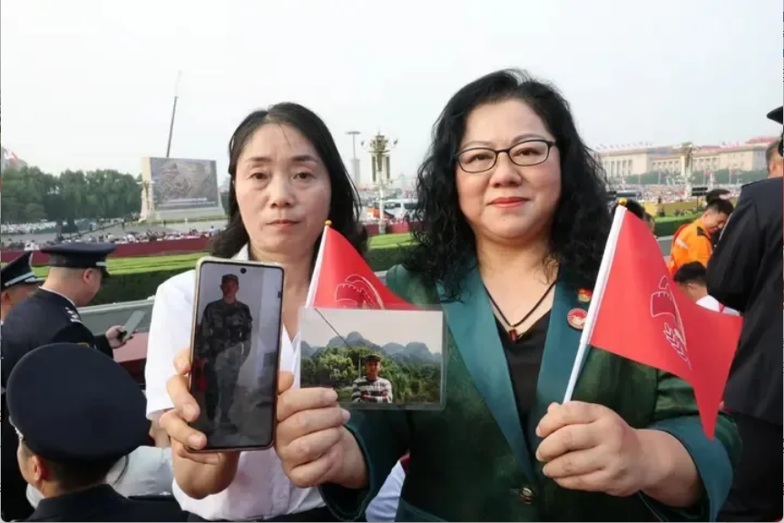 陈祥榕烈士的母亲姚久穗(左)与王伟烈士的妻子阮国琴合影。