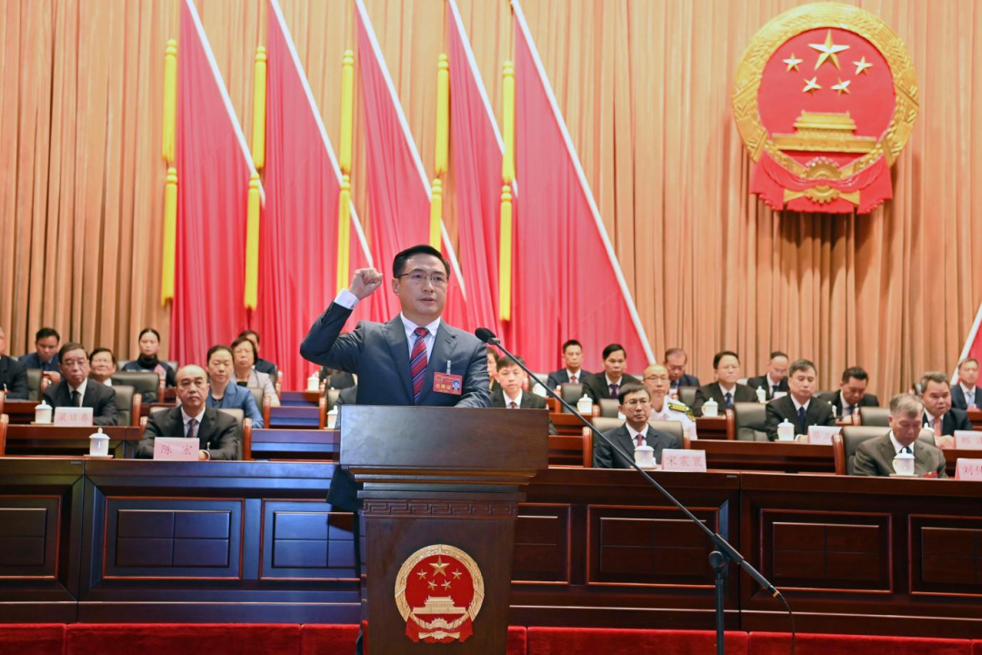 随后,新当选的市人大常委会主任宋震寰、副主任卢柳屏;新当选的市人民政府市长刘胜友;新当选的市监察委员会主任蔡立华、市中级人民法院院长傅晓明分批向宪法宣誓。
