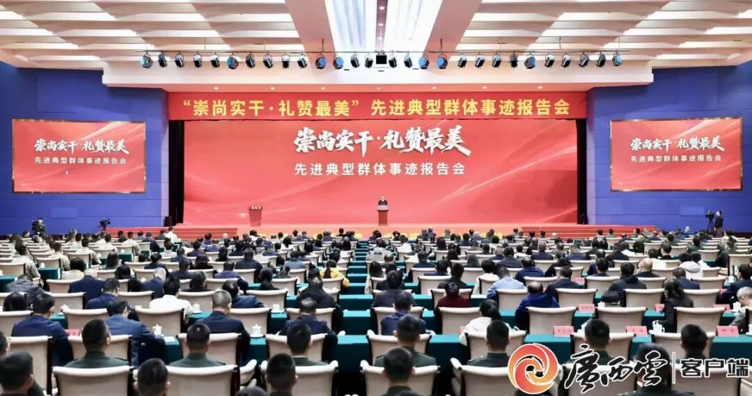 11月21日,自治区党委、政府和广西军区在南宁举行“崇尚实干·礼赞最美”先进典型群体事迹报告会,深入学习贯彻党的二十届四中全会精神和习近平强军思想,贯彻落实习近平总书记关于广西工作论述的重要要求,发挥好先进典型示范引领作用,引导全区上下树牢“实干为要、创新为魂,用业绩说话、让人民评价”的鲜明导向,学习榜样、争当先进,汇聚起建设新时代壮美广西的强大精神力量。自治区党委书记、自治区人大常委会主任、广西军区党委第一书记陈刚出席报告会并讲话。自治区主席韦韬、自治区政协主席孙大伟出席报告会。