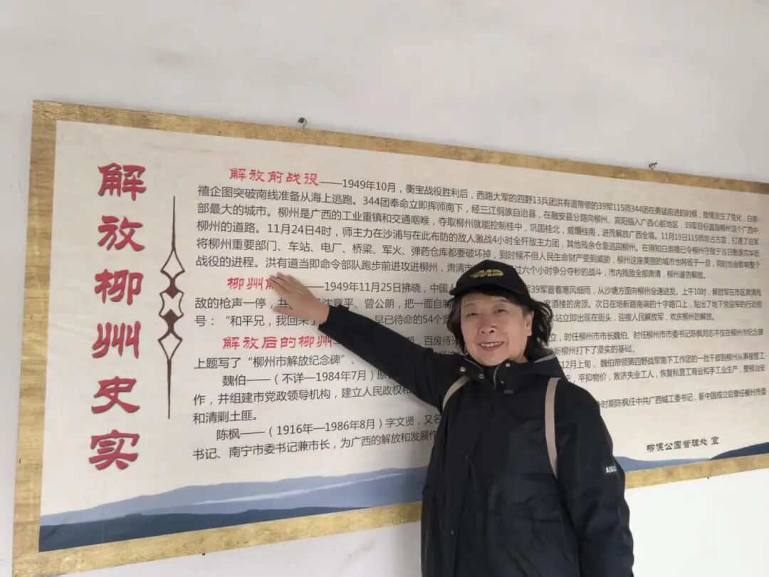 洪晓莉在柳侯公园观看《解放柳州史实》展板