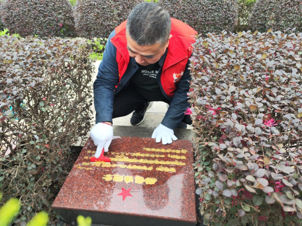 3月19日上午,柳州烈士陵园庄严肃穆。柳州市退役军人事务局志愿服务队数十人来到这里,为烈士墓碑描金翻新,以此缅怀英烈、传承红色精神。