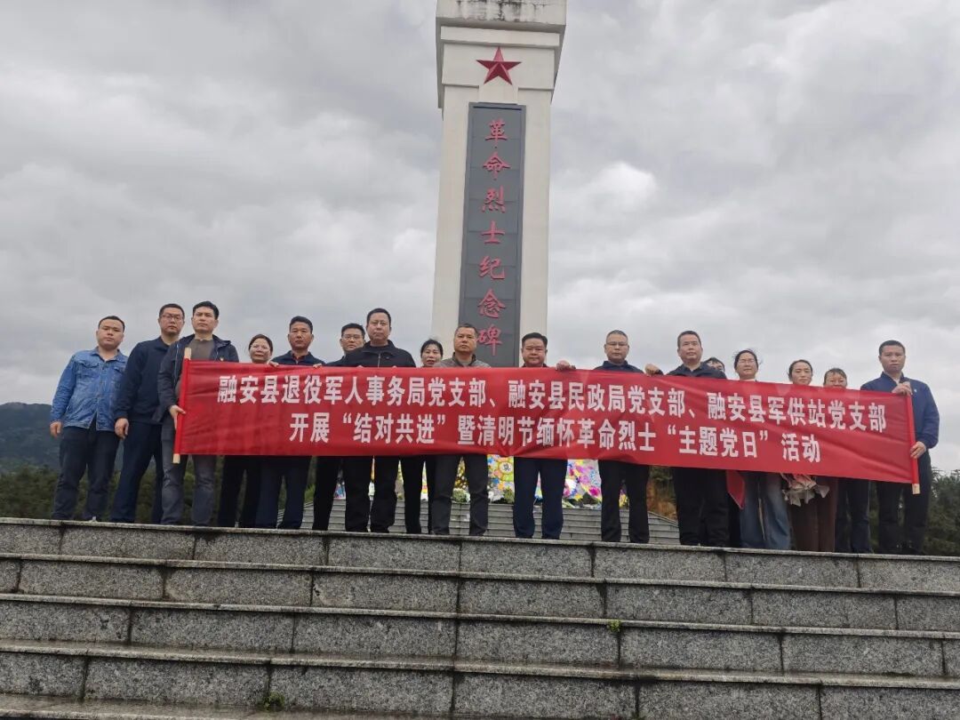 4月3日,融安县退役军人事务局党支部、县民政局党支部、融安军供站党支部联合组织全体党员,赴县烈士陵园开展“结对共进”暨清明节缅怀烈士“主题党日”活动,以庄重仪式追思英烈。