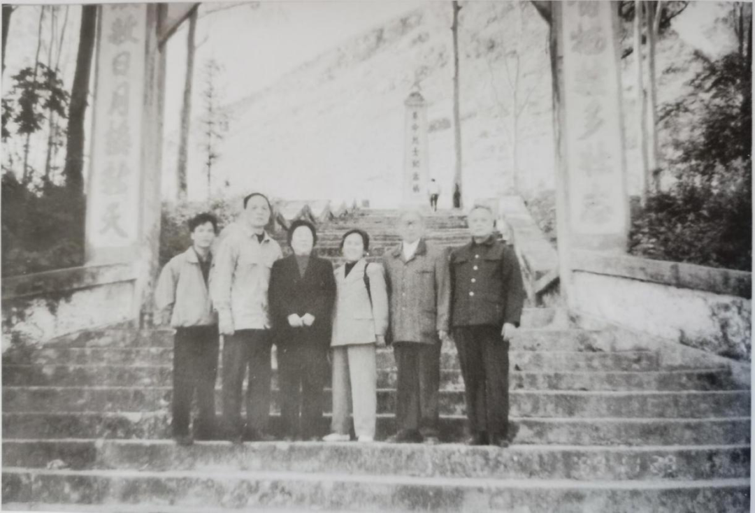 原一四六师四三六团文化教员覃海江同志1994年退休后,积极联系一四六师老领导老战友回柳祭扫烈士,组织编撰桂中剿匪战斗事迹,宣传一四六师桂中剿匪战斗光辉历程,继承发扬光荣革命传统。战友称他为柳州剿匪历史的“活字典”,现已九十一岁高龄,仍笔耕不辍。图为1999年11月29日,覃海江同志陪同老战友到柳江县三都、百朋祭扫烈士墓时在百朋烈士陵园合影留念,左二为覃海江同志。来源:《纪念册——庆祝柳州解放暨桂中剿匪六十周年》,原一四六师柳州战友联谊会编。