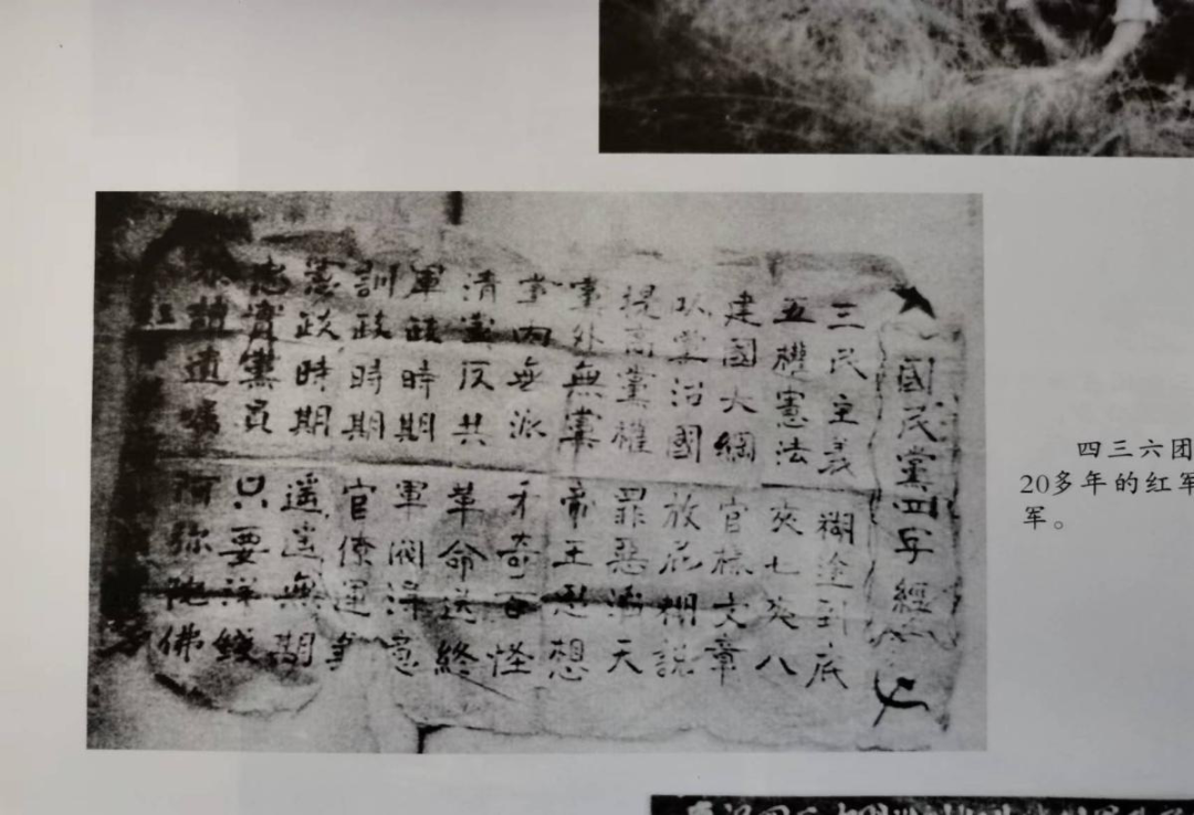 四三六团进剿柳北时,苗族同胞把珍藏20多年的红军宣传布告赠送给人民解放军。来源:《纪念册——庆祝柳州解放暨桂中剿匪六十周年》,原一四六师柳州战友联谊会编。