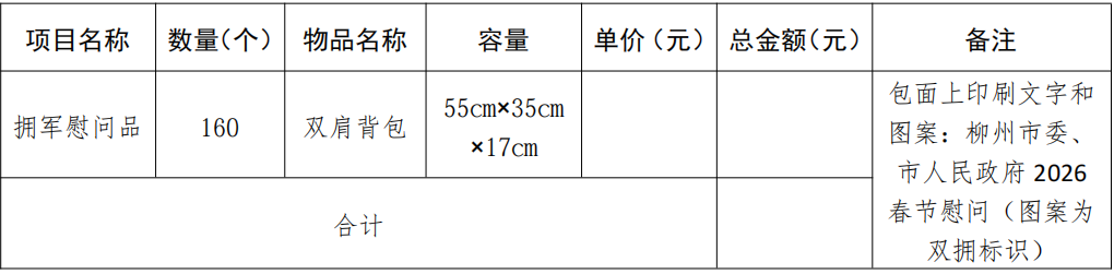 柳州市退役军人事务局关于拥军慰问品采购的询价公告