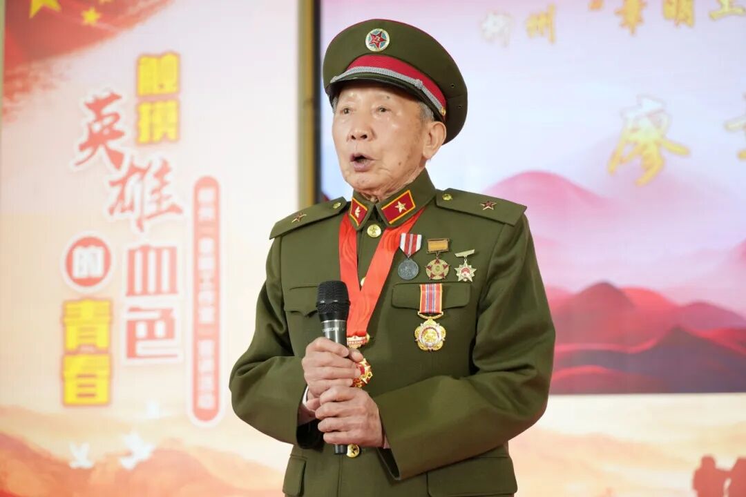 “头顶上忽然传来轰隆隆的响声,那是敌人的飞机,紧接着有人大喊‘卧倒’,两枚炸弹就在后面的山坡上爆炸……”廖章明用自己的亲身经历向同学们回应,“在战场上,我们不怕牺牲、不怕困难,心中只有一个信念,就是为了祖国和人民,不惜一切代价打赢这场战争,保卫我们的家园。”廖章明语气坚定,慷慨激昂,师生激动得鼓起热烈的掌声……