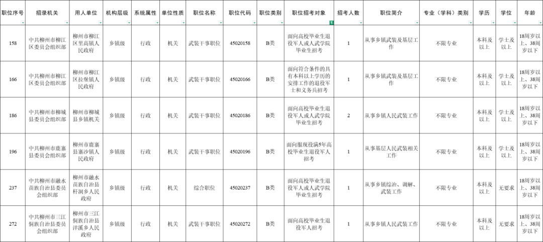 6.面向高校毕业生退役军人或人民武装学院毕业生招考职位;