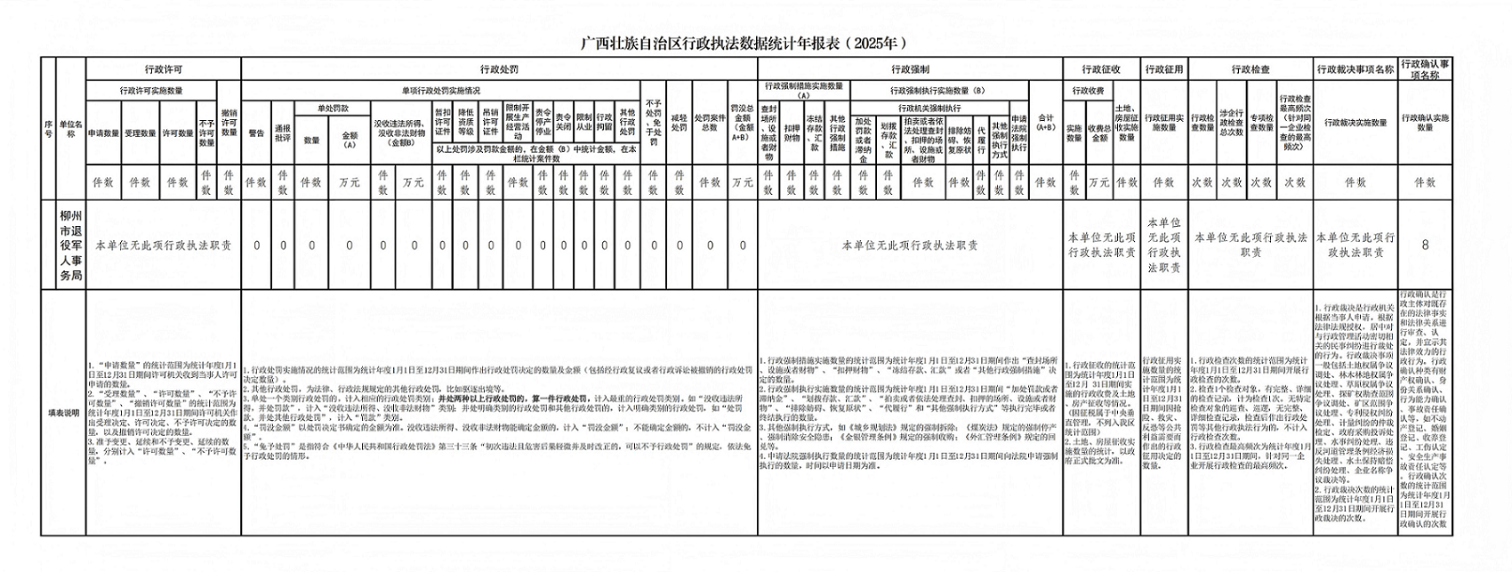 附件1:广西壮族自治区行政执法数据统计年报-柳州市退役军人事务局