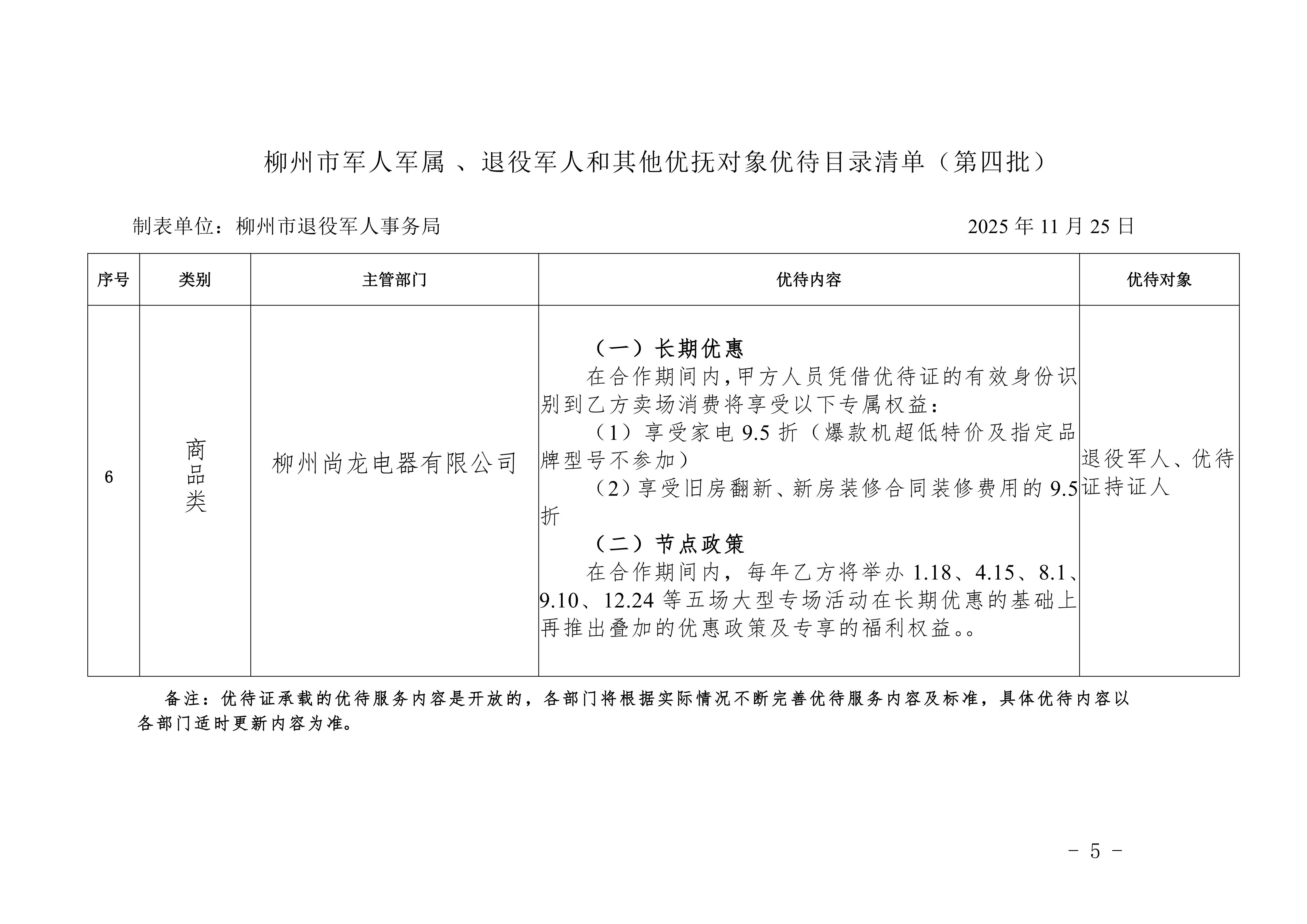 柳州市退役军人事务局关于公布第四批军人军属退役军人和其他优抚对象优待目录清单的通知