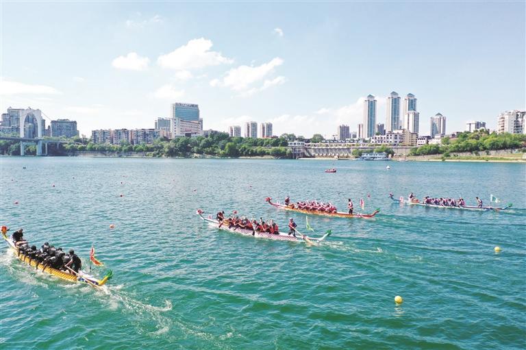 市民在碧水之上运动。 全媒体记者 覃科 摄