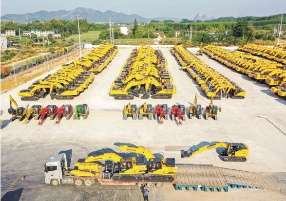 整装待发的柳工挖掘机。 全媒体记者 覃科 摄