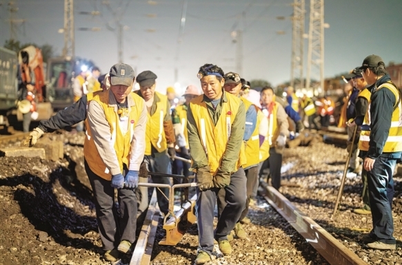 柳州南站咽喉道岔施工完成 430人深夜作业 护铁路运输安全通畅